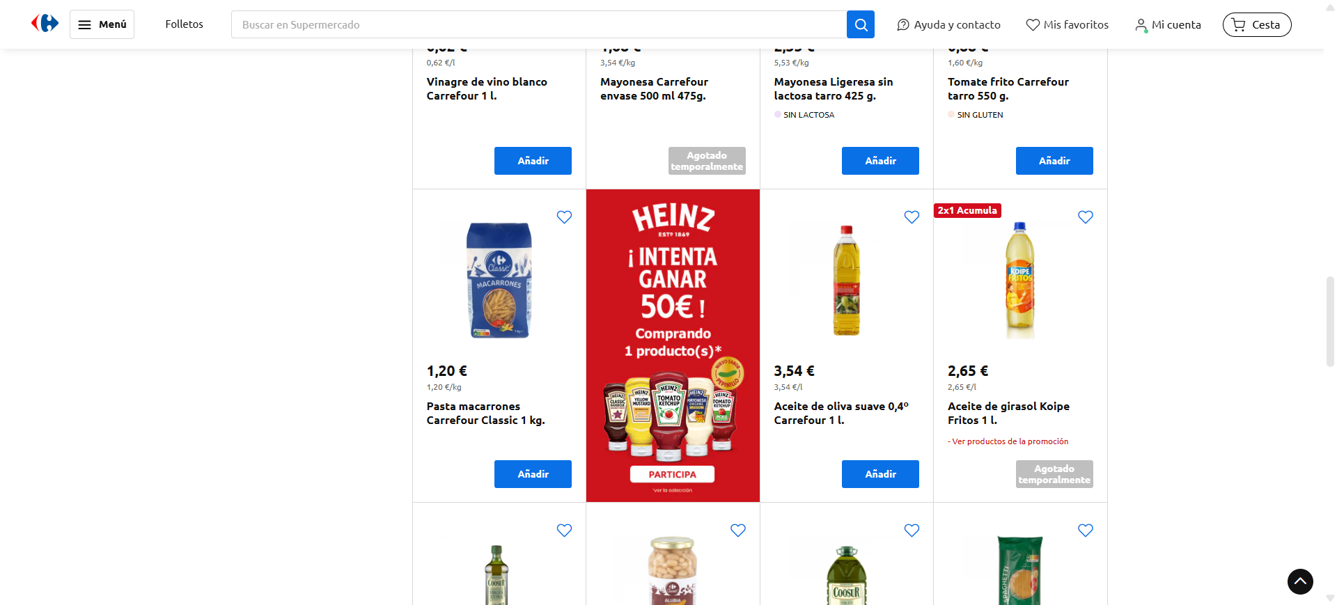 Pour répondre à son challenge de ventes incrémentales, la marque Heinz a pu bénéficier d’une visibilité maximisée, grâce aux emplacements gérés par Lucky cart sur le site de Carrefour.es.
