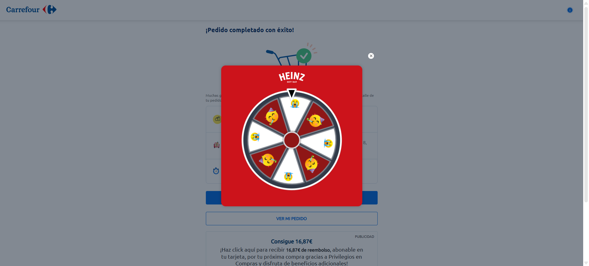 - Si le shopper était connecté à son compte de fidélité Carrefour, il était directement invité à participer au jeu Heinz pour remporter un bon d’achat de 50€.